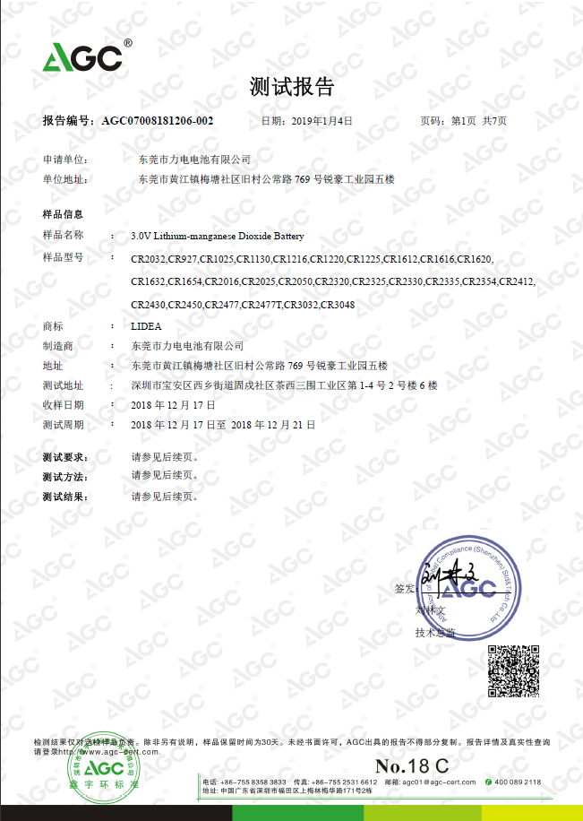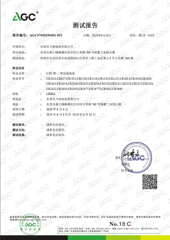 東莞市力電電池有限公司生產(chǎn)的扣式鋰錳電池已順利取得ROHS認證