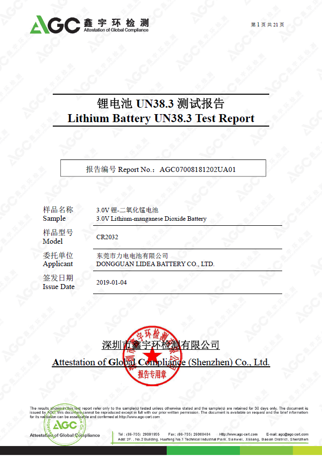 21東莞市力電電池有限公司生產(chǎn)的扣式鋰錳電池已順利取得ROHS認證