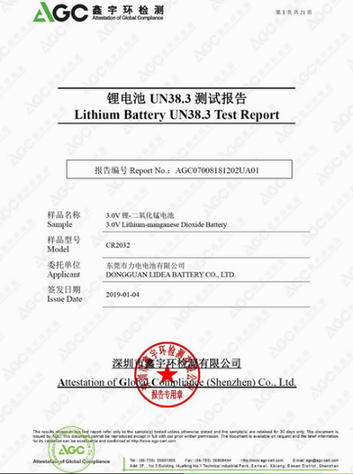 UN38.3測試報(bào)告-CR2450