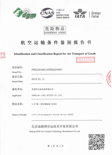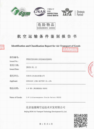航空運(yùn)輸條件鑒別報(bào)告書-CR2032