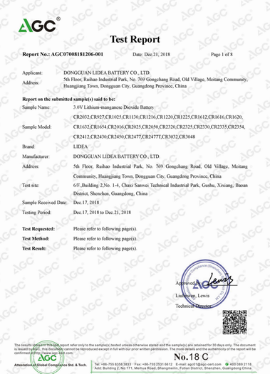 UN38.3測試報(bào)告-CR2032